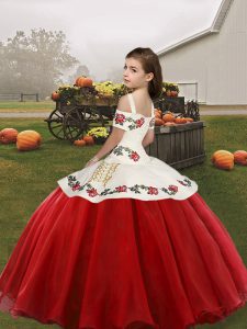 Hot Sale Turquoise Ball Gowns Straps Sleeveless Organza Floor Length Lace Up Embroidery Kids Formal Wear
