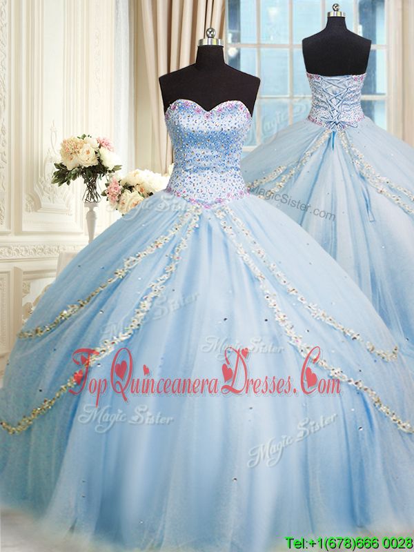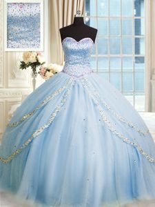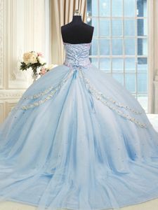 Hot Selling Baby Blue Sleeveless Court Train Beading and Appliques With Train 15th Birthday Dress