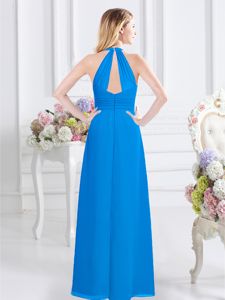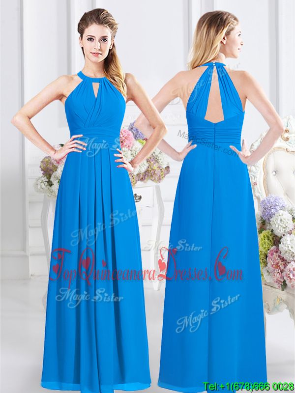 Hot Selling Baby Blue Zipper Halter Top Ruching Quinceanera Court Dresses Chiffon Sleeveless