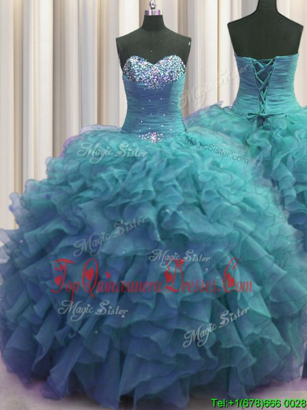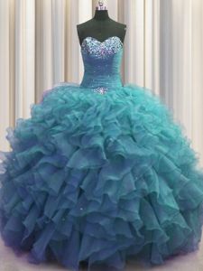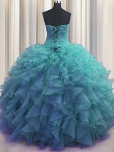 Hot Selling Beaded Bust Floor Length Ball Gowns Sleeveless Teal Vestidos de Quinceanera Lace Up