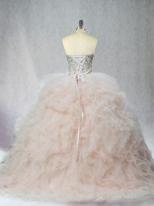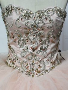 Hot Selling Champagne Sweet 16 Dresses Tulle Sleeveless Beading and Ruffles