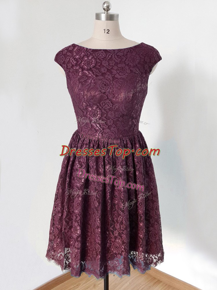 Hot Selling Dark Purple Lace Up Scoop Lace Dama Dress Lace Cap Sleeves