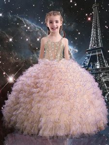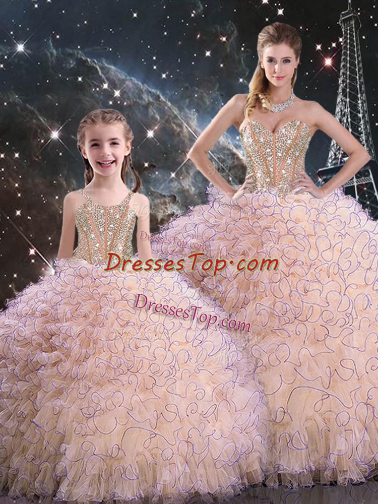Hot Selling Floor Length Peach Sweet 16 Quinceanera Dress Organza Sleeveless Beading and Ruffles