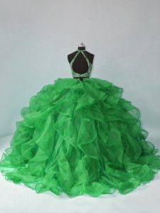 Hot Selling Halter Top Sleeveless Backless Quinceanera Gowns Green Organza