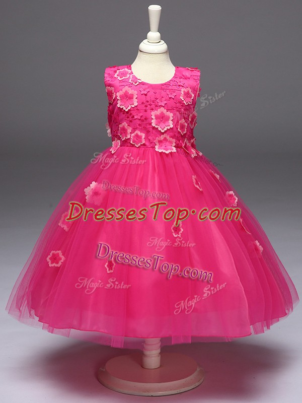 Hot Selling Hot Pink Sleeveless Tulle Zipper Little Girl Pageant Gowns for Wedding Party