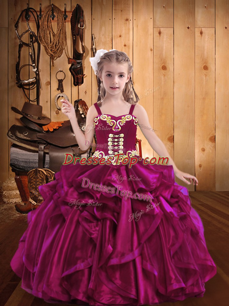 Hot Selling Organza Sleeveless Floor Length Kids Formal Wear and Embroidery and Ruffles