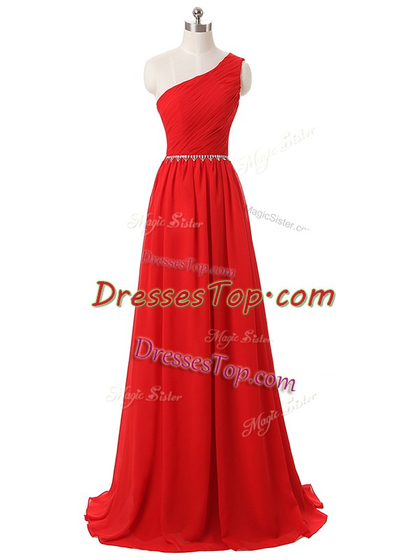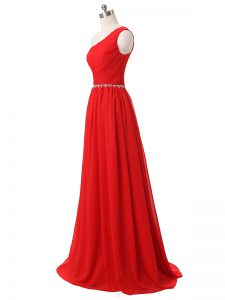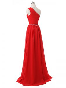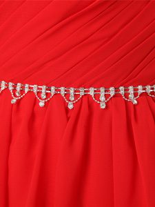Hot Selling Red Chiffon Side Zipper Damas Dress Sleeveless Floor Length Beading and Ruching