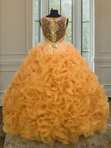 Hot Selling Rose Pink Sweet 16 Dress Military Ball and Sweet 16 and Quinceanera and For with Beading and Lace and Ruffles Scoop Sleeveless Brush Train Zipper