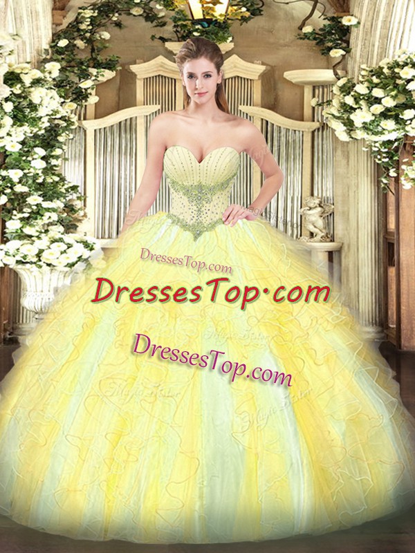 Hot Selling Sleeveless Beading and Ruffles Lace Up Quinceanera Dresses
