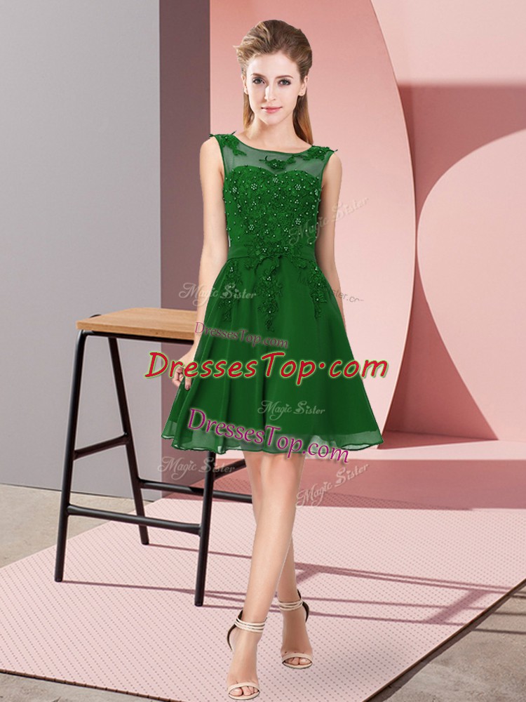 Hot Selling Sleeveless Knee Length Appliques Zipper Quinceanera Court Dresses with Dark Green