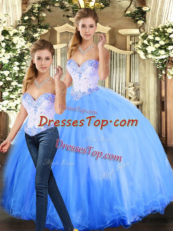 Hot Selling Tulle Sleeveless Floor Length Sweet 16 Dresses and Beading