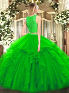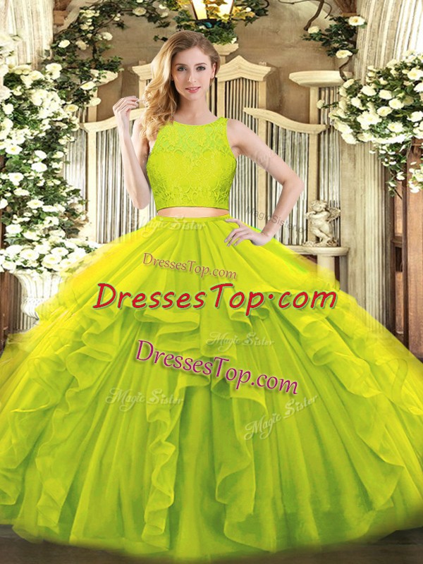 Hot Selling Yellow Green Zipper Scoop Ruffles 15 Quinceanera Dress Tulle Sleeveless