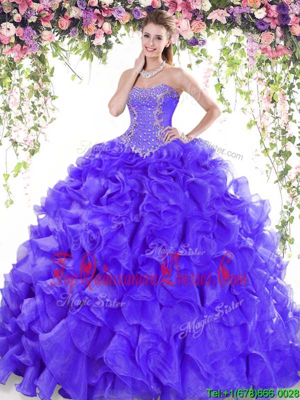 Ideal Ball Gowns Sweet 16 Dress Lilac Sweetheart Organza Sleeveless Floor Length Lace Up