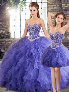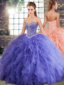 Ideal Floor Length Lace Up 15 Quinceanera Dress Lavender for Military Ball and Sweet 16 and Quinceanera with Beading and Ruffles