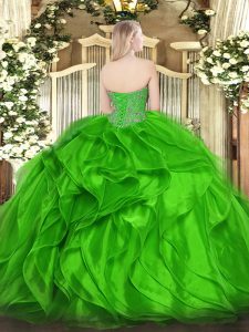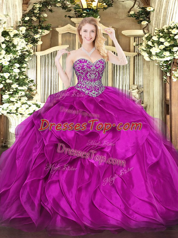 Ideal Fuchsia Sleeveless Floor Length Beading and Ruffles Lace Up Quinceanera Dress