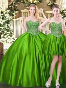 Ideal Green Sleeveless Tulle Lace Up Sweet 16 Dresses for Military Ball and Sweet 16 and Quinceanera