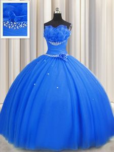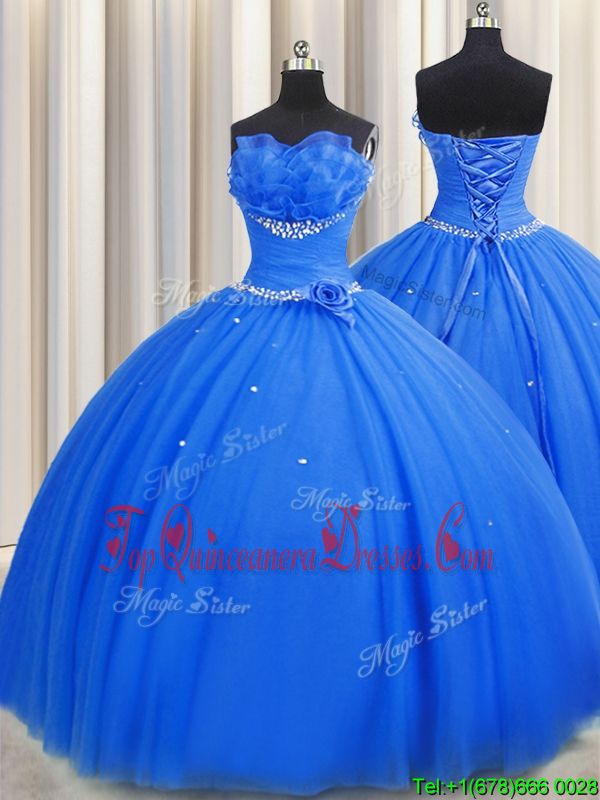 Ideal Handcrafted Flower Multi-color 15 Quinceanera Dress Military Ball and Sweet 16 and Quinceanera and For with Beading and Ruffles and Hand Made Flower One Shoulder Sleeveless Lace Up