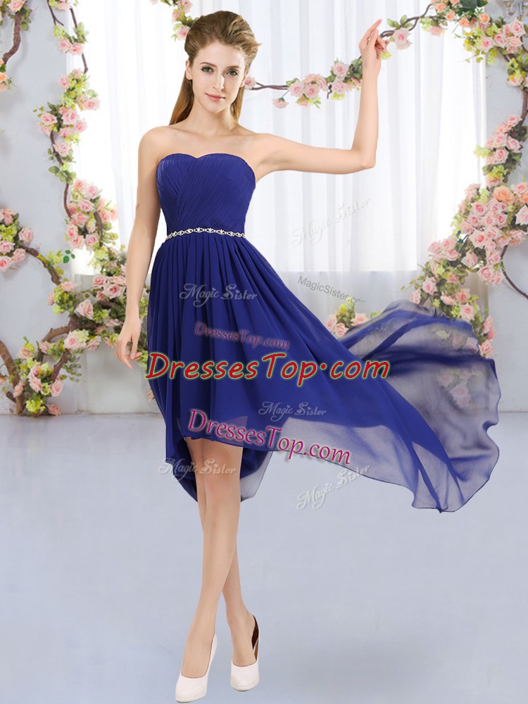 Ideal High Low Empire Sleeveless Royal Blue Dama Dress for Quinceanera Lace Up
