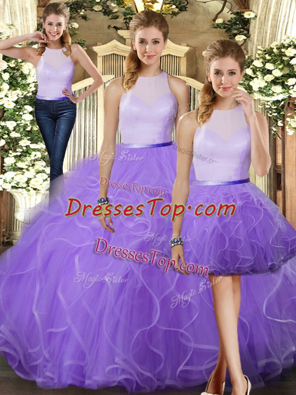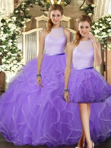 Ideal Lavender Sleeveless Tulle Backless 15 Quinceanera Dress for Military Ball and Sweet 16 and Quinceanera