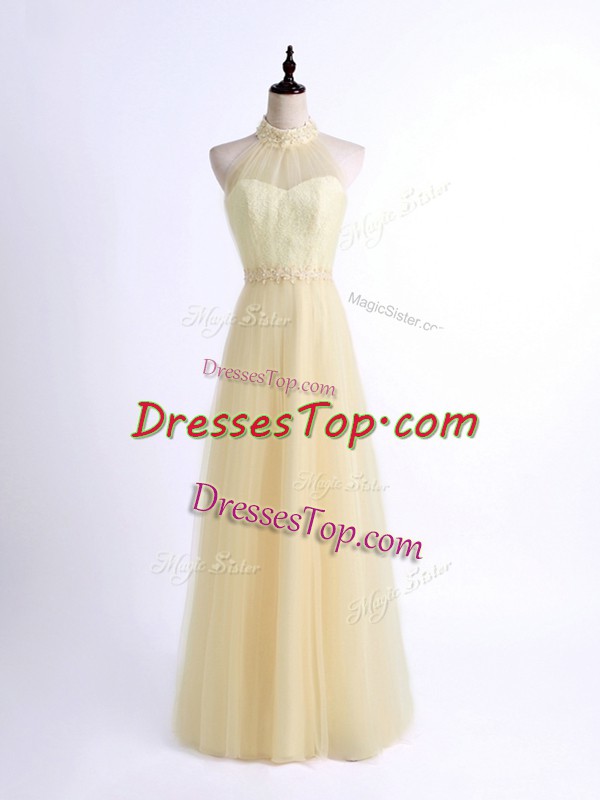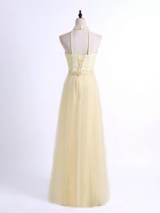 Ideal Light Yellow Tulle Lace Up Quinceanera Dama Dress Sleeveless Floor Length Lace and Appliques