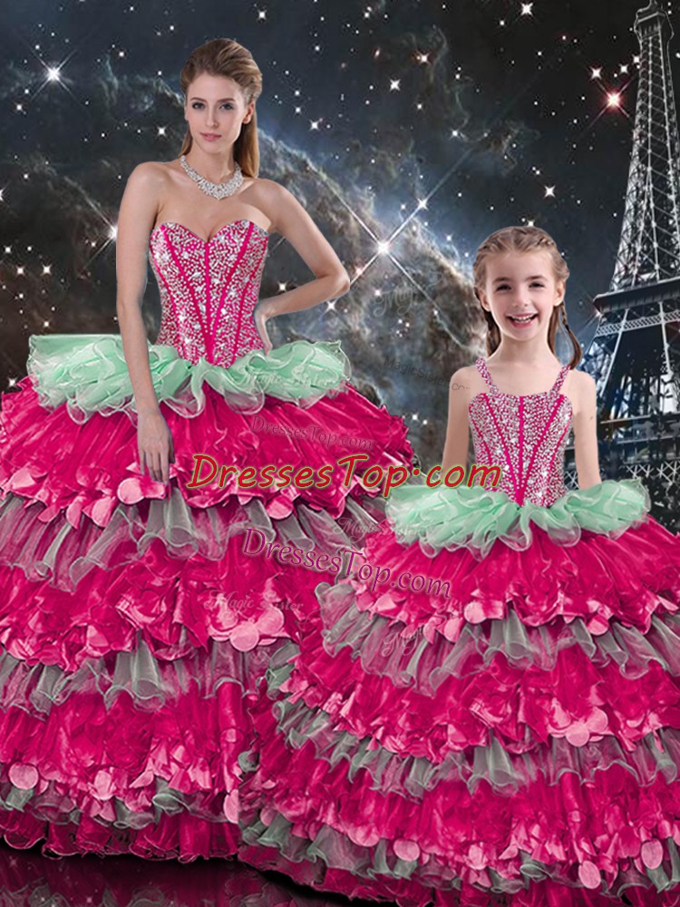 Ideal Multi-color Ball Gowns Sweetheart Sleeveless Organza Floor Length Lace Up Beading and Ruffles Quinceanera Dresses