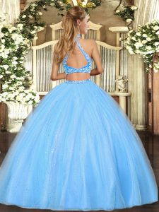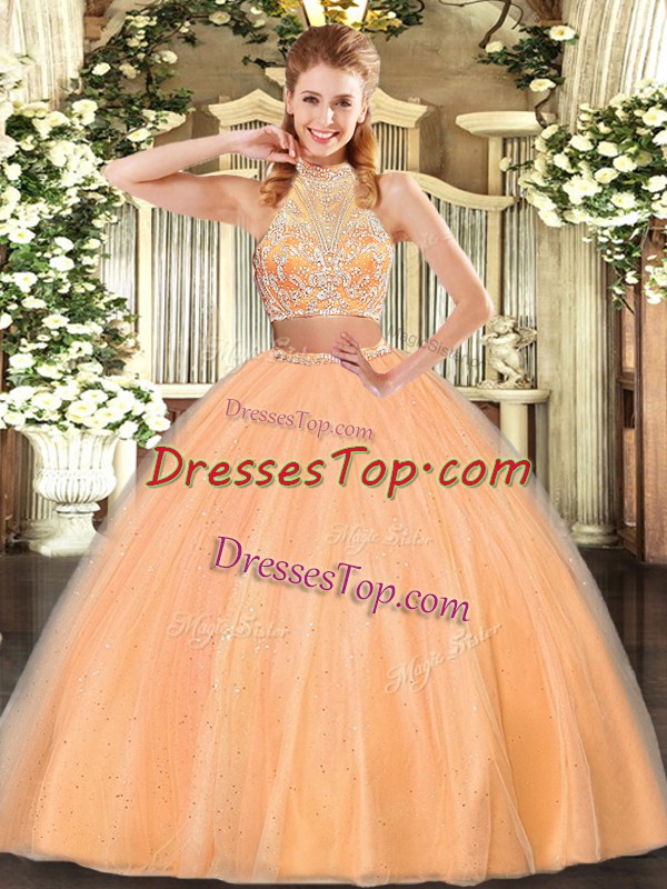 Ideal Orange Red Halter Top Criss Cross Beading Quince Ball Gowns Sleeveless