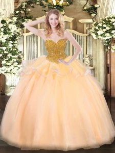 Ideal Orange Red Organza Lace Up Sweetheart Sleeveless Floor Length Sweet 16 Dresses Beading