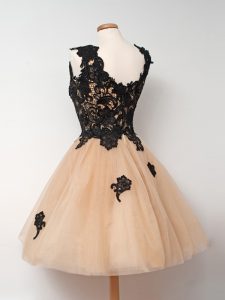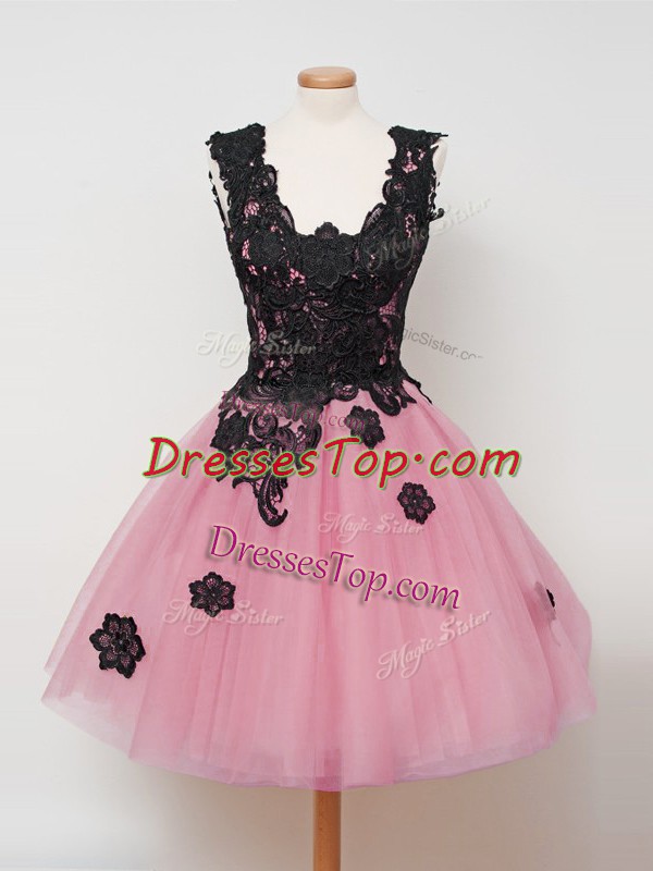 Ideal Pink Ball Gowns Straps Sleeveless Tulle Knee Length Zipper Lace Quinceanera Dama Dress