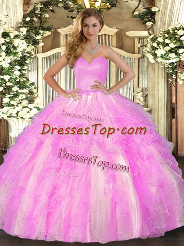Ideal Ruffles Ball Gown Prom Dress Lilac Lace Up Sleeveless Floor Length