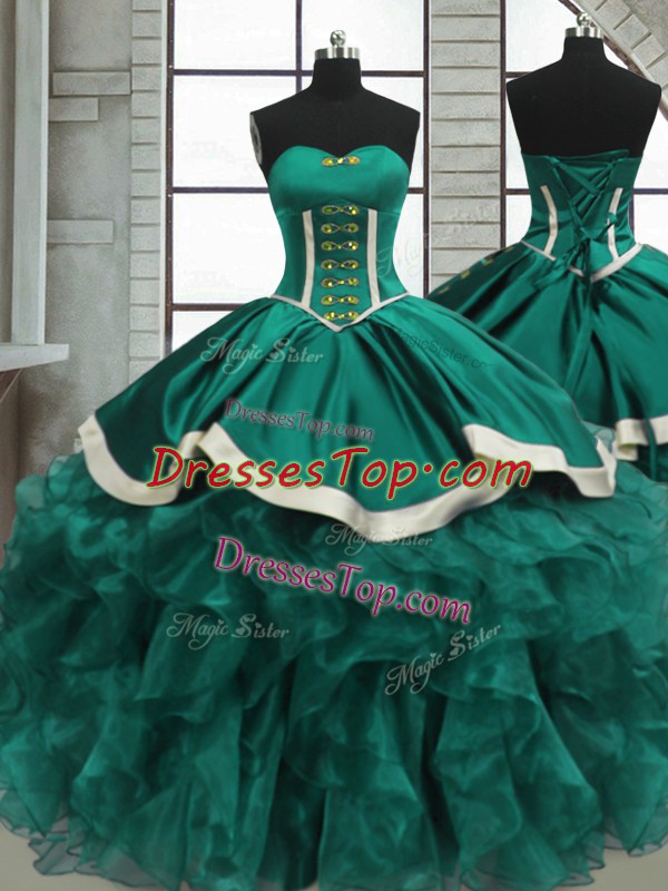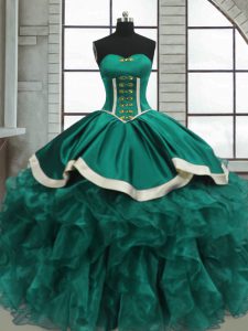 Ideal Turquoise Lace Up Sweetheart Beading and Ruffles 15th Birthday Dress Organza Sleeveless