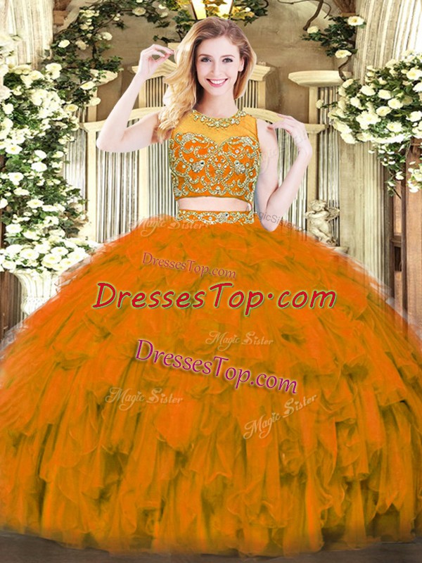 Ideal Two Pieces Sweet 16 Quinceanera Dress Rust Red Scoop Tulle Sleeveless Floor Length Zipper
