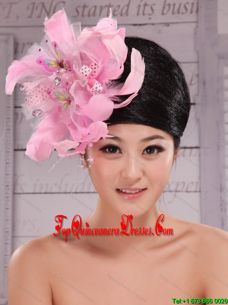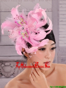 Imitation Pearls and Feather Decorate Tulle and Printing Fabric Headpices For Speciral Occasion Party
