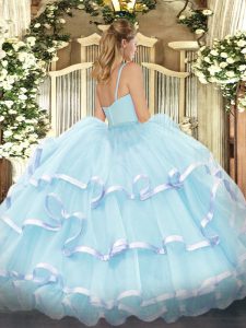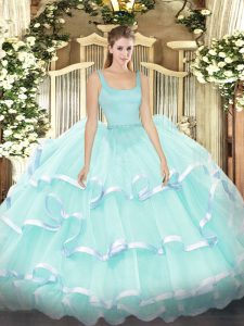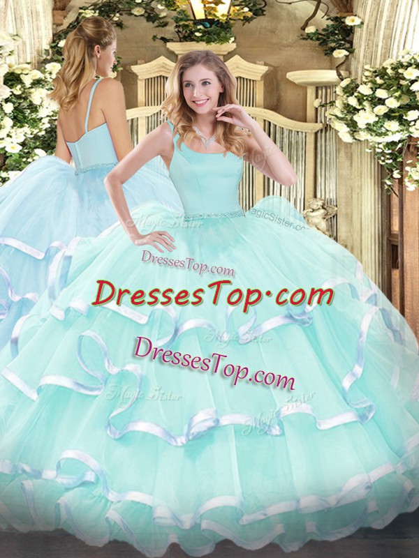 Inexpensive Apple Green Straps Neckline Beading and Ruffled Layers Sweet 16 Quinceanera Dress Sleeveless Zipper