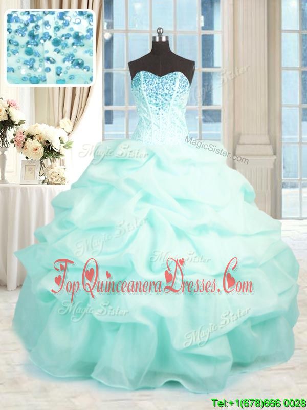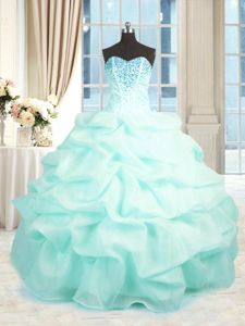 Inexpensive Aqua Blue Ball Gowns Organza Sweetheart Sleeveless Beading and Ruffles Floor Length Lace Up 15 Quinceanera Dress