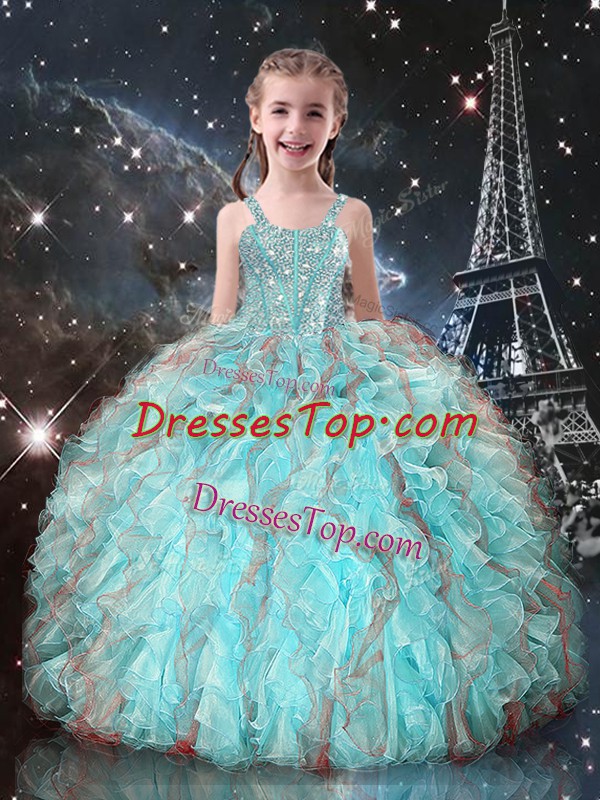 Inexpensive Aqua Blue Sleeveless Organza Lace Up Little Girl Pageant Gowns for Quinceanera and Wedding Party