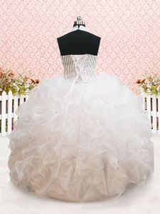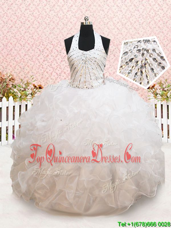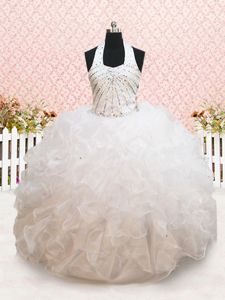 Inexpensive Ball Gowns Pageant Dresses White Halter Top Organza Sleeveless Floor Length Lace Up