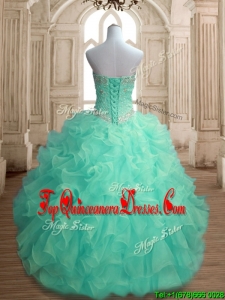 Inexpensive Beaded and Ruffled Big Puffy Quinceanera Dress in Apple Green