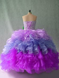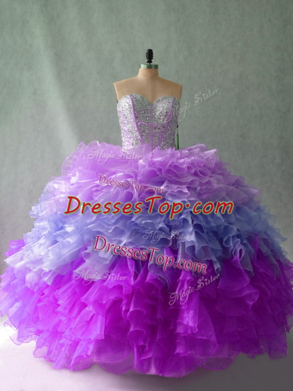 Inexpensive Beading and Ruffles 15th Birthday Dress Multi-color Lace Up Sleeveless Floor Length