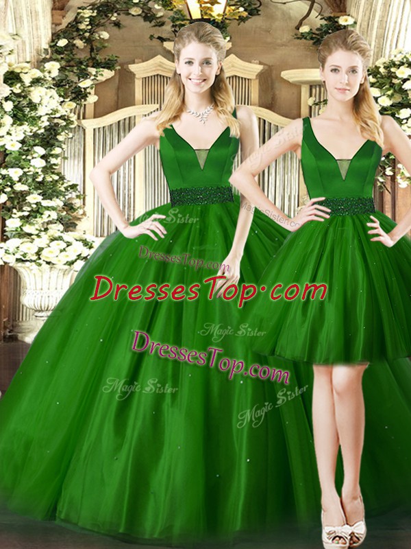 Inexpensive Dark Green Sleeveless Ruching Floor Length 15th Birthday Dress