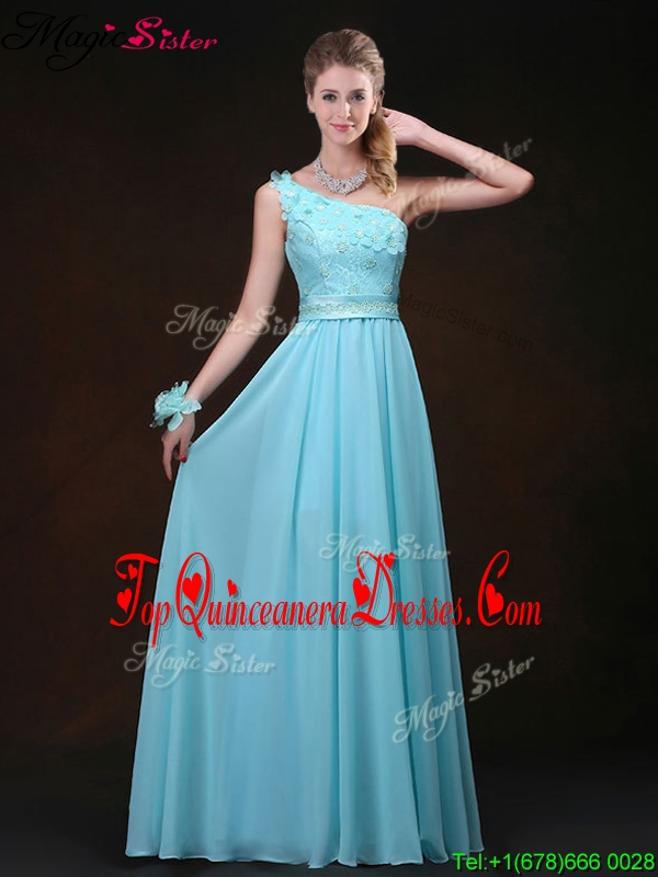 Inexpensive Empire One Shoulder Fashionable Damas Dresses with Appliques