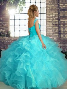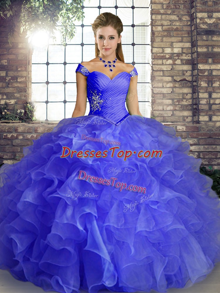 Inexpensive Floor Length Blue Quinceanera Dresses Organza Sleeveless Beading and Ruffles