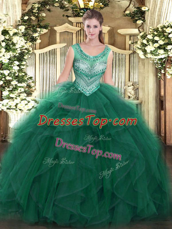 Inexpensive Floor Length Dark Green Vestidos de Quinceanera Scoop Sleeveless Lace Up
