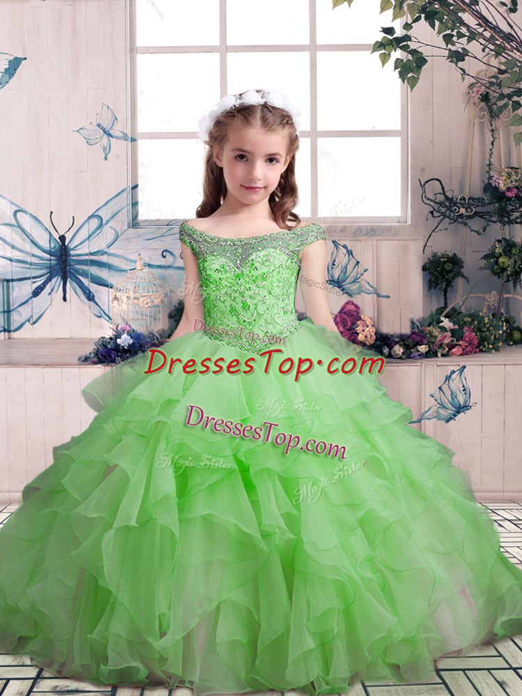 Inexpensive Floor Length Girls Pageant Dresses Organza Sleeveless Beading and Ruffles