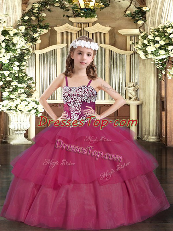Inexpensive Floor Length Wine Red Winning Pageant Gowns Organza Sleeveless Appliques and Ruffled Layers