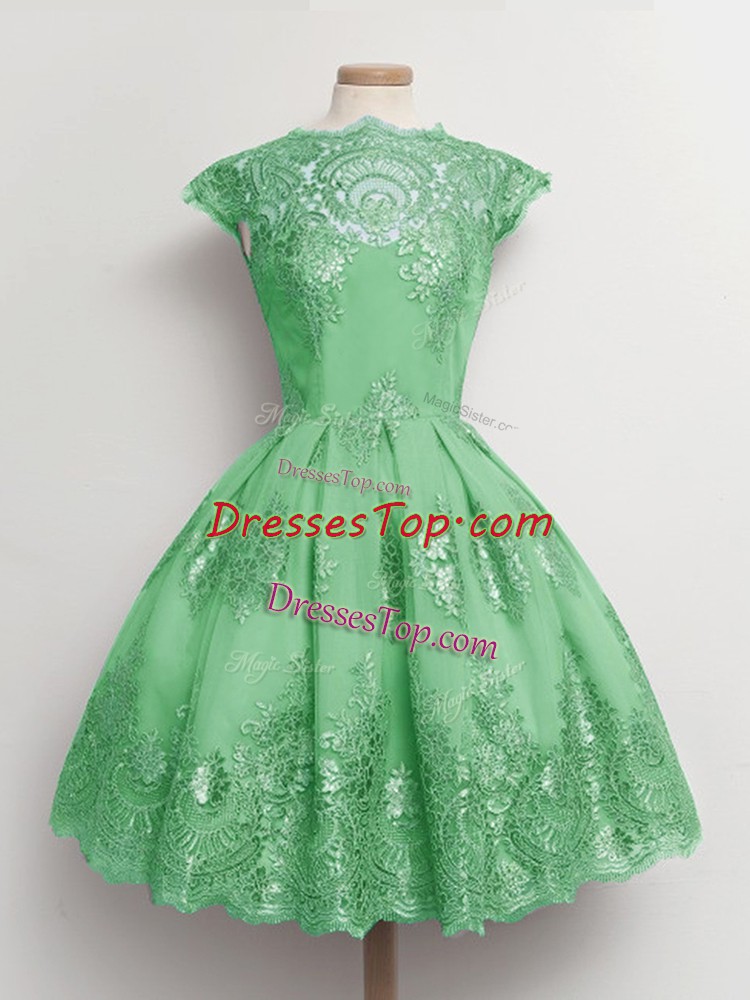 Inexpensive Lace Court Dresses for Sweet 16 Green Lace Up Cap Sleeves Knee Length
