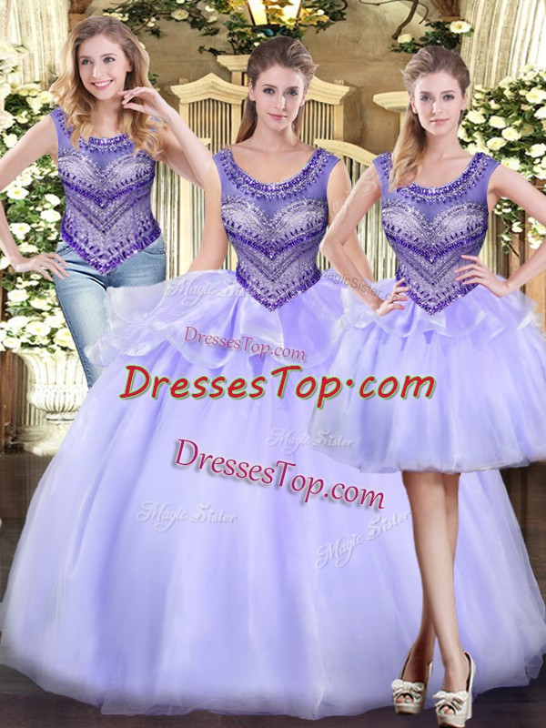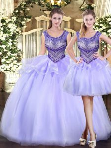 Inexpensive Lavender Sleeveless Floor Length Beading and Ruffles Lace Up 15th Birthday Dress