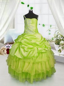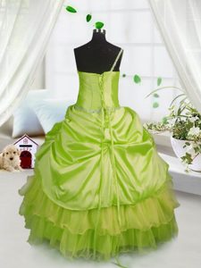 Inexpensive One Shoulder Sleeveless Lace Up Floor Length Beading and Ruffled Layers and Pick Ups Kids Pageant Dress