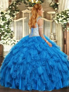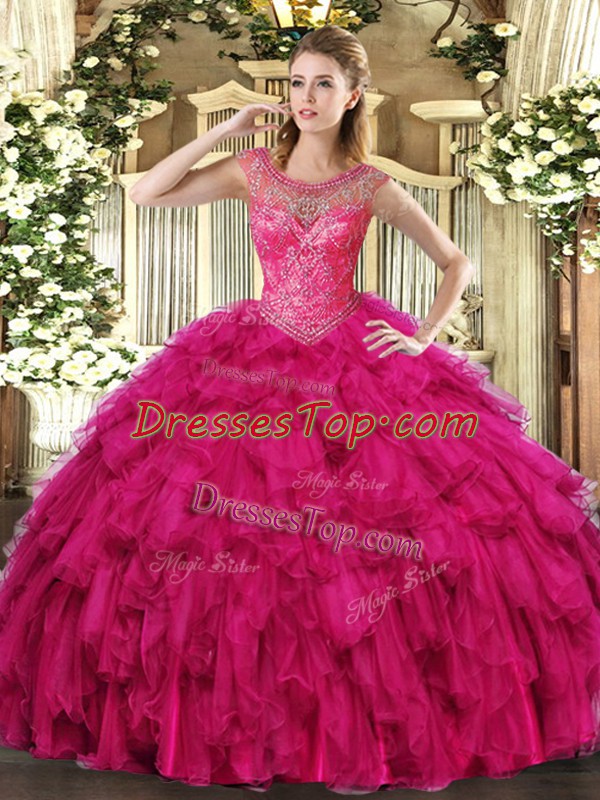 Inexpensive Scoop Sleeveless Organza Sweet 16 Dress Beading and Ruffles Lace Up