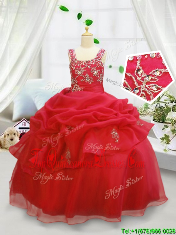 Inexpensive Sleeveless Beading Side Zipper Pageant Dress for Girls