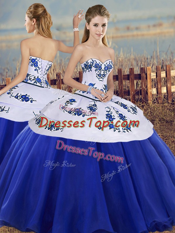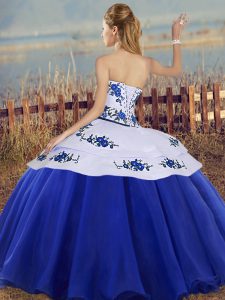 Inexpensive Sleeveless Floor Length Embroidery Lace Up Sweet 16 Quinceanera Dress with Royal Blue